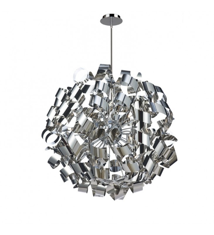 The \"Bel Air\" Collection, features a chrome interior cluster, and chrome plated arms that hold beautiful brushed aluminum swirls. Truly a stunning and unique design (also available in black with chrome interior). \nDue to the California Title 20 regulations, replaceable light bulbs will not be included with any product sold to customers in California.