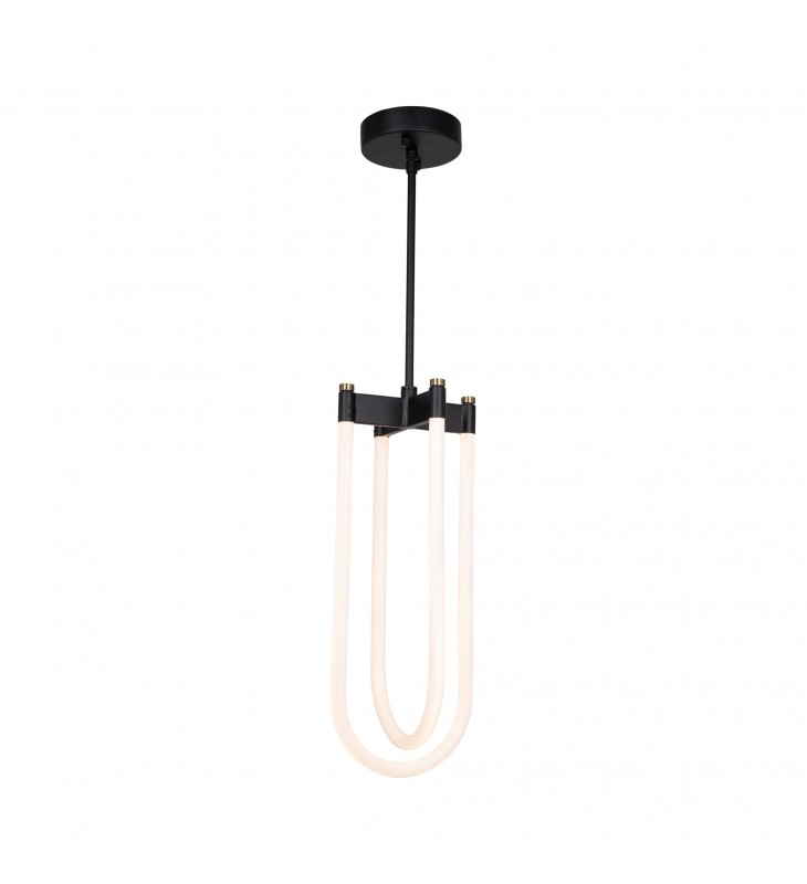 The Cascata Collection, designed by Kevin Kraemer, features a sleek and minimalist design, combining precision craftsmanship with modern aesthetics. The frame is black with brass accents. The bright LED illuminated drapes throughout giving this collection an illusion of weightlessness. This eye-catching collection is a perfect complement to any surrounding. Model shown is a height adjustable pendant style light.