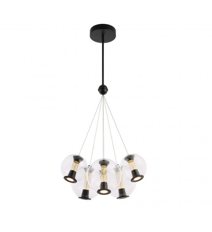 The Arlo collection is a sophisticated lighting ensemble characterized by clusters of transparent glass spheres that showcase an intricate interior mesh design. These spheres are ingeniously illuminated at both the center and bottom using cutting-edge LED technology, creating a captivating and contemporary lighting effect. The combination of modern design and advanced lighting technology in the Arlo collection offers a stylish and visually striking addition to any space. 6 light cluster type chandelier shown - available in a larger 8 light as well. (This model is height adjustable with rods included)