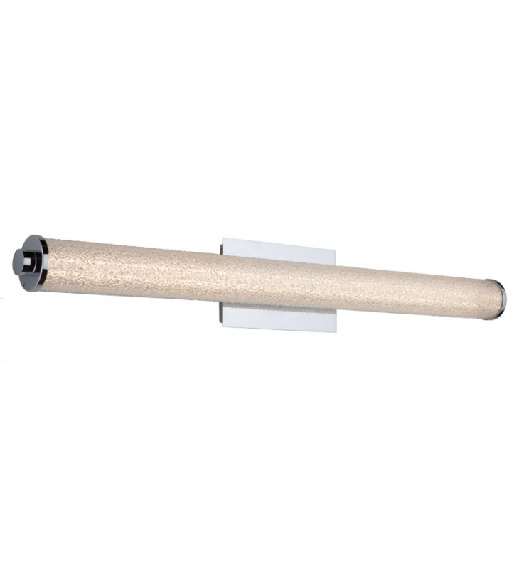 The \"Buchanan\" bathroom vanity collection features sparkling crystalline glassware that is illuminated by bright LED. The back plate and sides are plated in shiny chrome. Super energy efficient and fantastic color rendition (CRI 90). Delivered Lumens: 2951\n \n \n \n