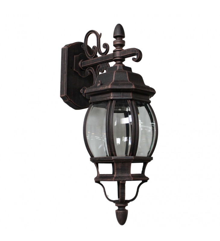 The \"Classico\" outdoor wall sconce has a traditional design, clear glassware, and is finished in a rich brown. This product is backed with an industry leading warranty, which covers corrosion for 25 years.\n