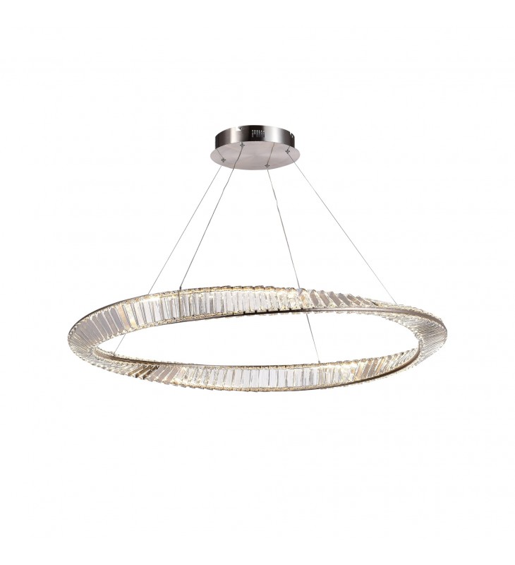 Sparkling from every angle, the Stella collection is simply timeless. The pendant is draped with authentic crystal and complimented with a Satin Nickel frame (also available in Brushed Brass). As your eye follows the frame it twists around the crystal in a unique fashion. This pendant is illuminated by bright and energy efficient LEDs (4 sizes available).
