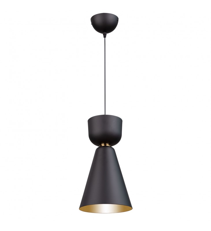 The \"Tempo Collection\" from designer Steven Sabados [S&C] gives a transitional to modern twist on single pendants. This fixture is a metal shade in black with a reflective gold on the interior. The mid section has a brass ring to add a little extra. The cord is height adjustable. There are 3 versions available in different shapes.