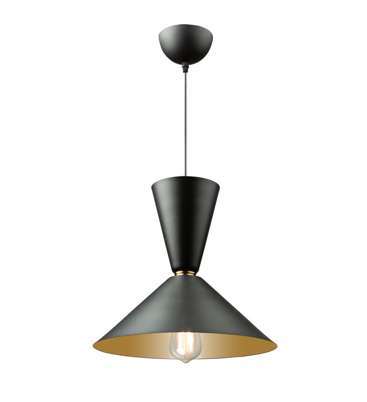 The \"Tempo Collection\" from designer Steven Sabados [S&C] gives a transitional to modern twist on single pendants. This fixture is a metal shade in black with a reflective gold on the interior. The mid section has a brass ring to add a little extra. The cord is height adjustable. There are 3 versions available in different shapes.