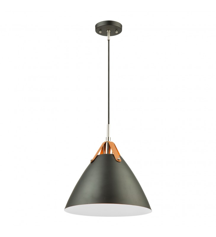From designer Steven Sabados of S&C, the Tote collection is a definite fashion trend for your home or office d??cor. The matte black metal shades are suspended to the wiring with leather straps. The interior of the shades have a super reflective white finish for maximum light functionality. Two finishing touches for this design are the polished nickel accents, and the textile black wiring coverings.