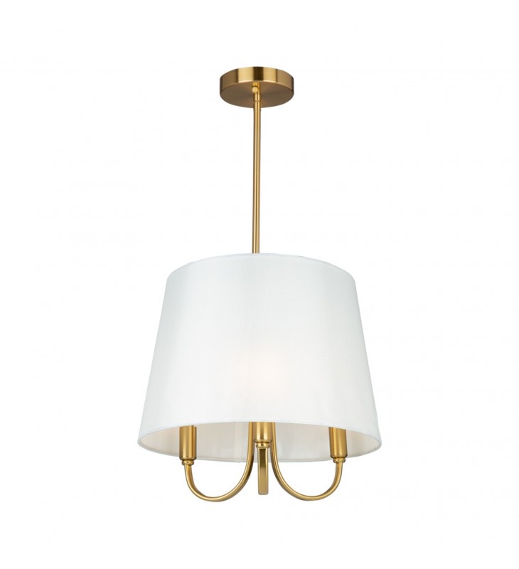 From the S&C design firm, with strict direction from Steven Sabados, the Rhythm Collection of pendants features a traditional type frame with flat tubular arms. The frame is finished in rich plated brushed gold and complimented with linen hardback white shades. \n