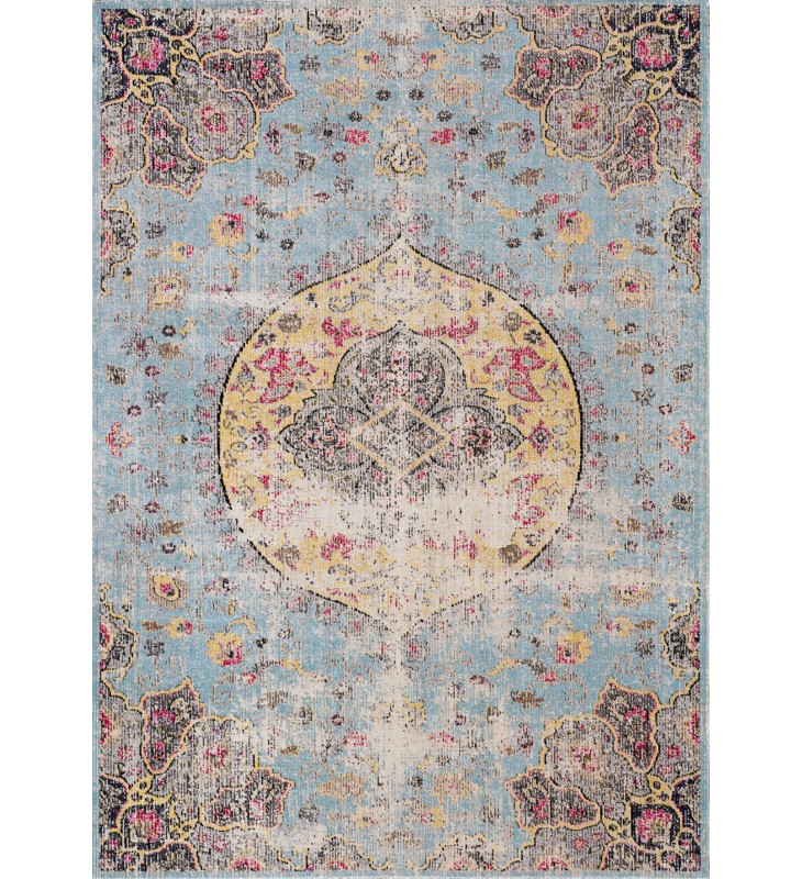 (B564/0848 160230)-Sara Blue Yellow Jewel Centre Rug, 5'3" x 7'7"-(Kalora)