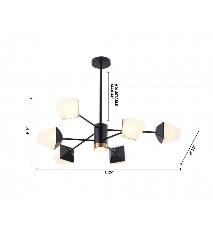 This exquisite LED lighting is in a black finish. The frame is made out of metal, and it comes with white acrylic shades. You can create a timeless feel while using modern forms