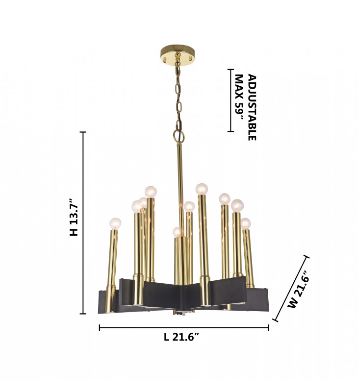 Product Feature : Matte Brass Arms - Black Iron Frame - Chain Length: 59"