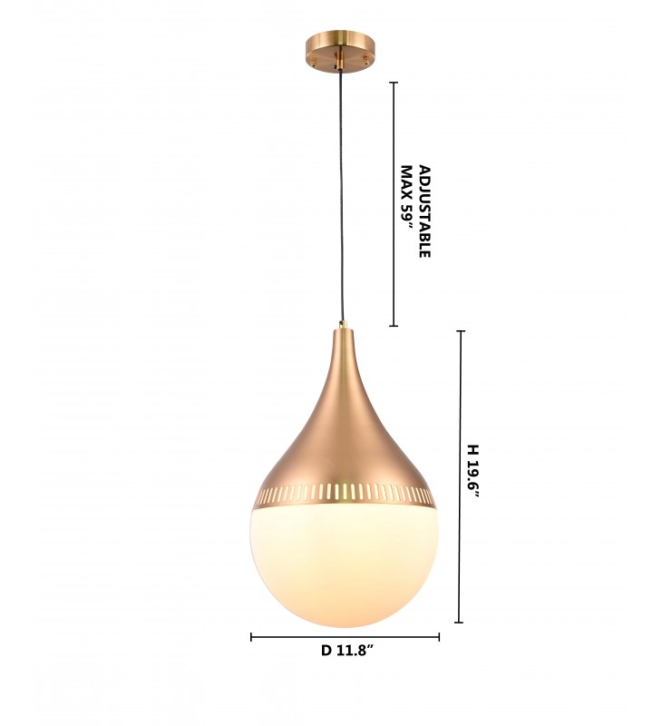 This single pendant lighting is in a gold finish. The frame is made out of metal, and it comes with a milk white glass shade. You can create a timeless feel while using modern forms.