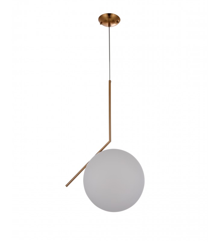 This single pendant light is in a gold finish with a milk white glass shade. The frame is made out of iron. It can provide enough illumination in any room