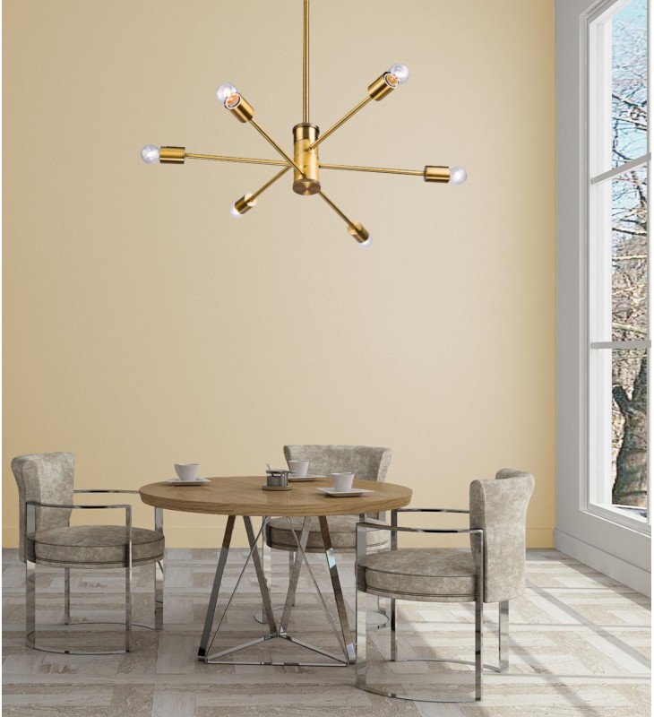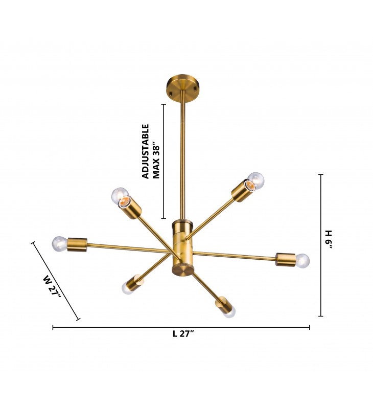 This ceiling fixture is in a gold finish. It comes with six arms and the arms can be moved different direction. This fixture can be use in any room, and can provide better illumination.