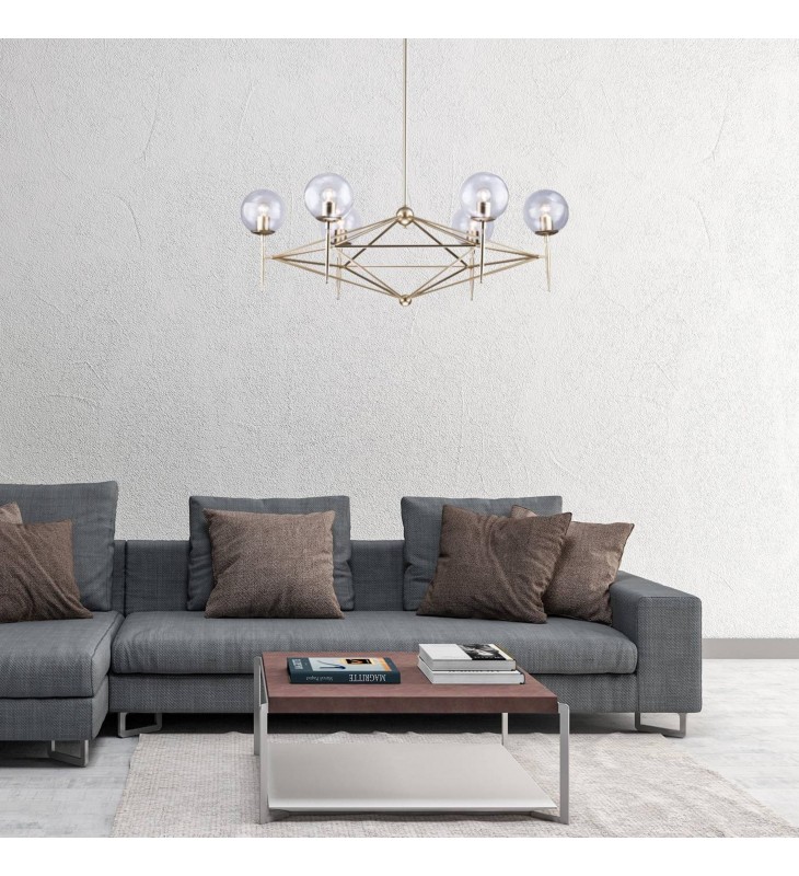 Product Feature : Gold Finish - Clear Glass Globe Shade - Rod Length: 2X16"+6"