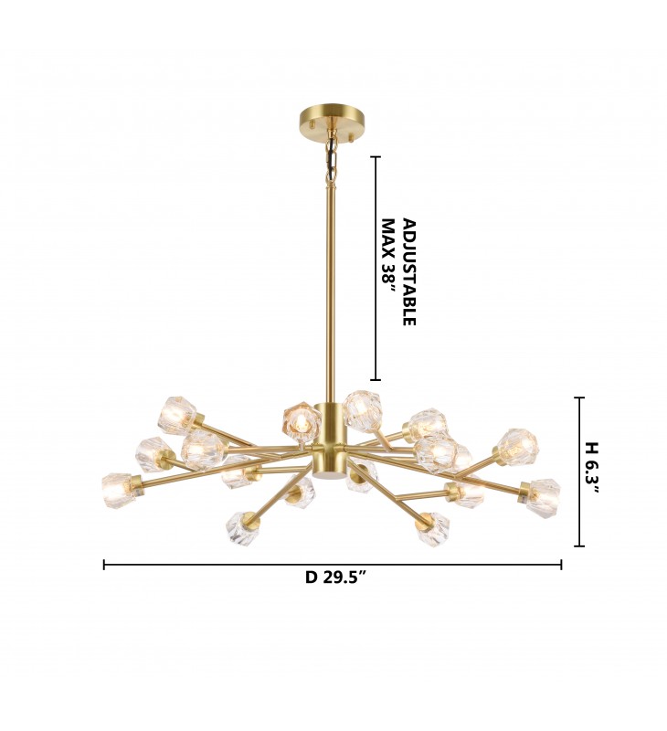Product Feature : Shiny gold finish - Clear Crystal Ball Shades - Pipe Length: 2X16"+6