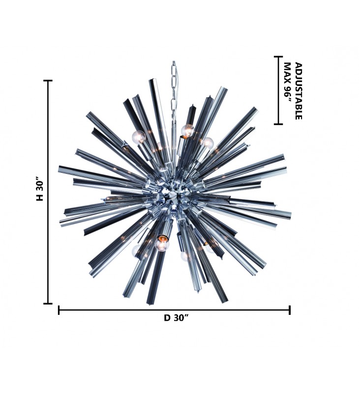 The center of this spike chandelier is made out of metal in a chrome finish. The smoke glass decorations and bulbs (sold separately) are around of the center. This fixture is ideal in any room, entryways, and more.