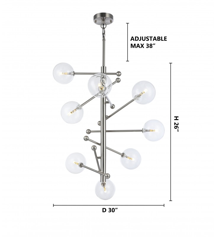 Product Feature : Shiny Nickel Frame - Clear Glass Orb Shades - Rod Length: 2X16"+6"
