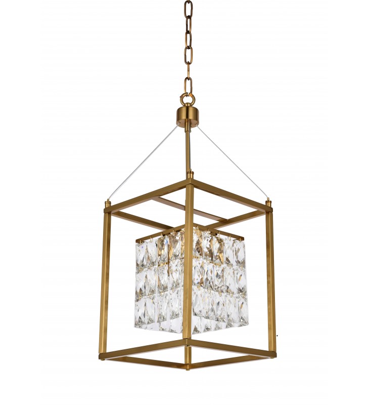 This exquisite chandelier is in an antique brass finish. The frame is made out of metal, and it comes with hanging crystals in clear color. Adjustable chain links makes this fixture suitable for most ceiling heights.