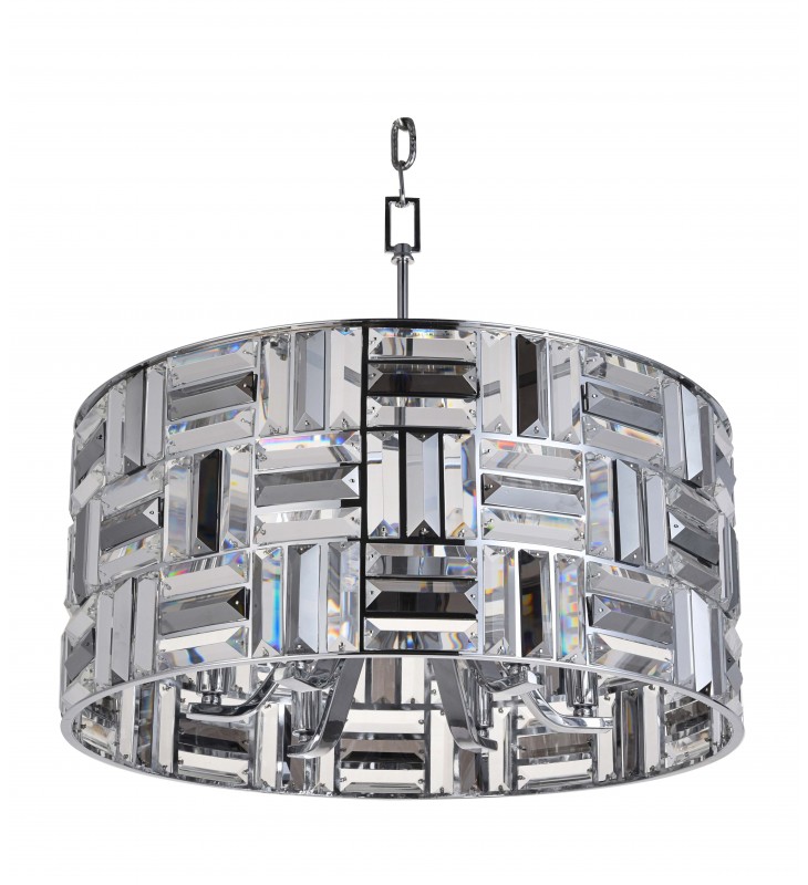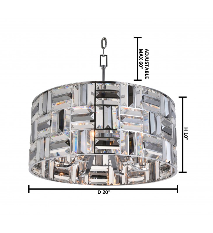 Product Feature : Chrome Finish - Smoke Crystal Drum Shade - Chain Length: 60"