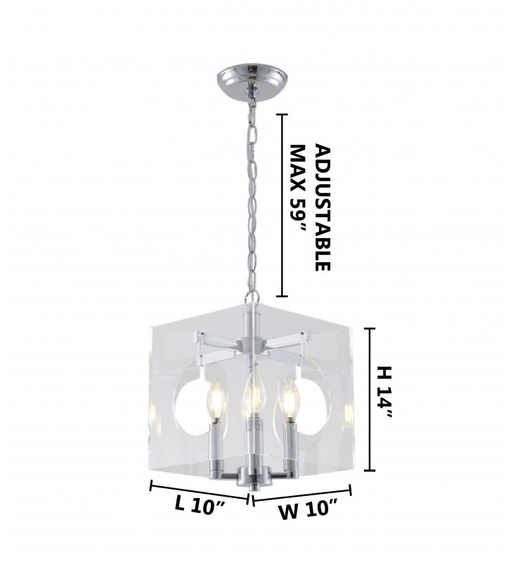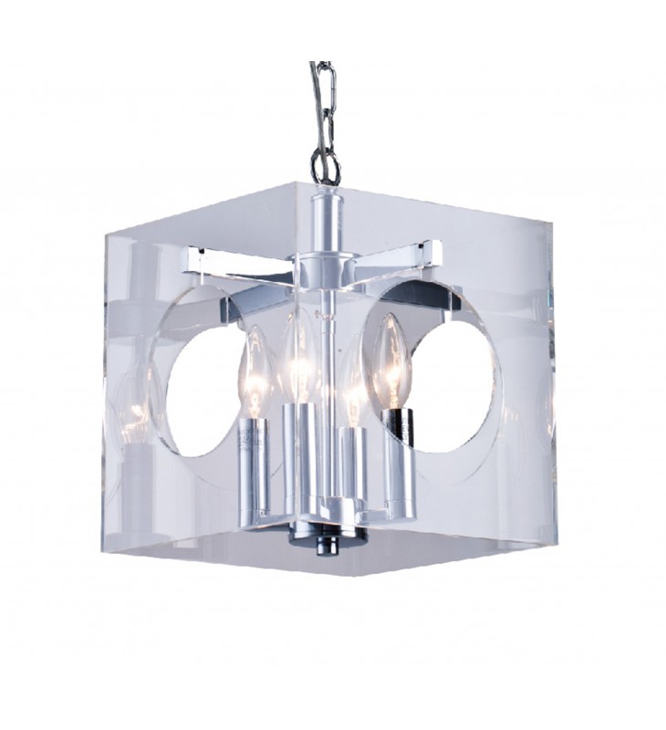 This ceiling fixture is in a chrome finish. The clear acrylic frame with round open hole add more modern for this fixture. It comes with 4 E12 bulbs (sold separately) can provide better illumination. It can be used in any room, entryways, and more.