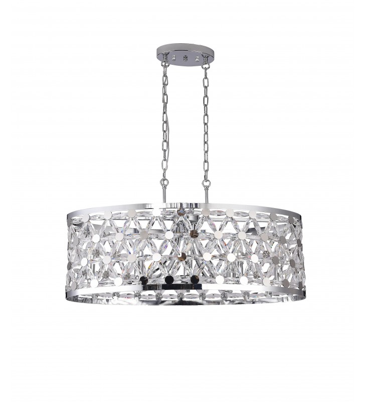 - This chandelier comes in a chrome metal oval shade