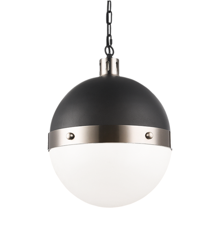 The Torino Pendants take elegance and simplicity and blends them perfectly. The combination of Matte Black and Aged Gold Brass or Brushed Nickel metal meeting in the middle with opal glass or clear glass makes a powerful statement in any room.Two sized globes are available in both finishes, use them individually or hang multiple pendants grouped together for a masterpiece. *LIGHTBULBS NOT INCLUDED