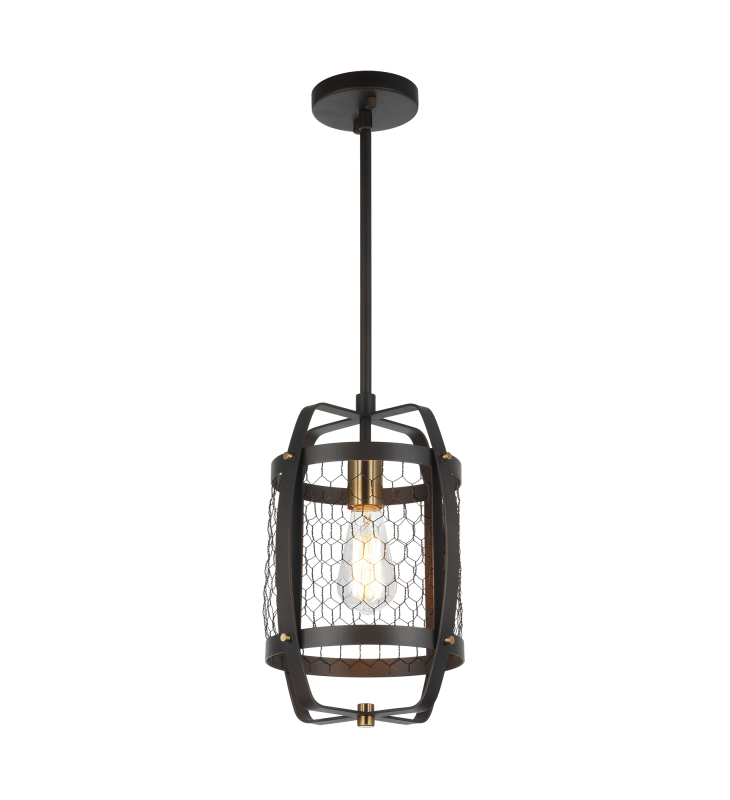 The Hearth family collection exudes the warmth of a fire. Formed Rusty Black metal bands frame around black mesh shade.The addition of curved linear bands gives this collection a unique style.The airiness of the mesh allows you to view the beautiful Aged Gold Brass interior. *LIGHTBULBS NOT INCLUDED