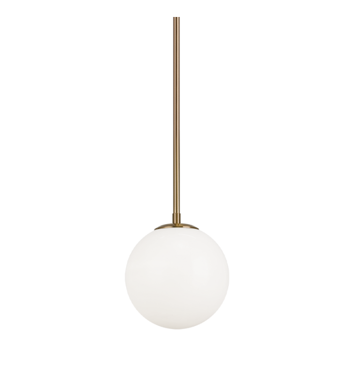 Novo is modern yet classic ¨C available in the form of pendant, chandelier, wall sconce, and flush mount. The rods and base are either Aged Gold Brass or Black finish paired with a contrasting Opal or Clear round glass and diamond shaped glass. The style is very versatile and will add beauty to multiple rooms.