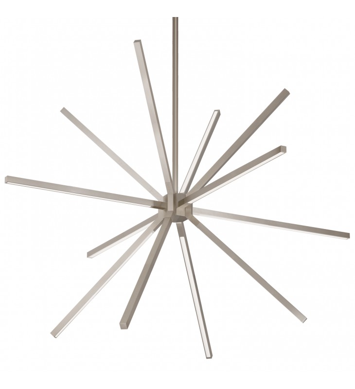 Sirius\' array of elements emanate from a single point in a starburst of light. A visual statement that draws the eye as the burnished finish interplays with the light, revealing shifting highlights and shadows. Contemporary and decorative.