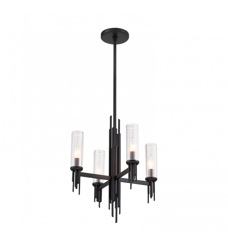 CH335418MBCR-Torres 18-in Clear Ribbed Glass/Matte Black 4 Lights Chandeliers