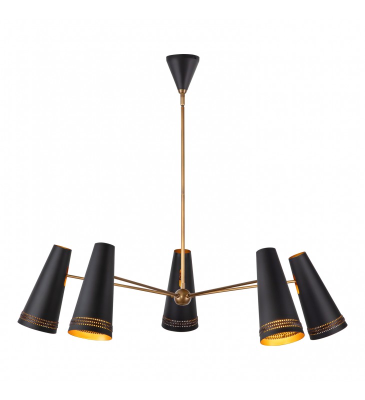 CH342545MBHL-Brickell 45-in Matte Black/Hazelnut Leather 5 Lights Chandeliers