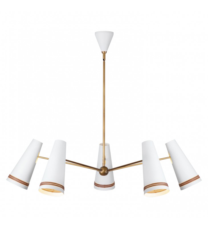 CH342545MWHL-Brickell 45-in Matte White/Hazelnut Leather 5 Lights Chandeliers