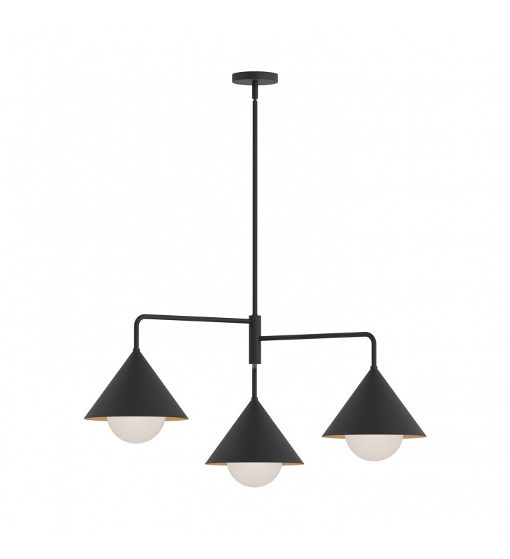 CH485245MBOP-Remy 38-in Matte Black/Opal Glass 3 Lights Chandeliers