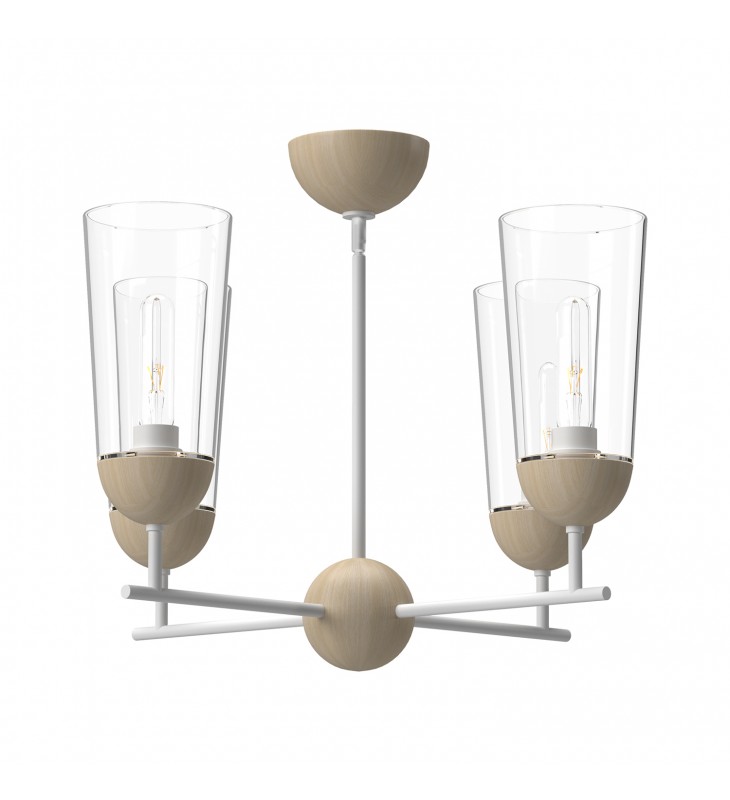 CH542324WHWK-Emil 25-in White/White Oak 4 Lights Chandeliers