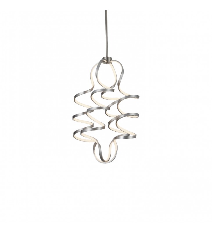 A looping radiant line casts light across space in a continuous helical path. The Synergy series is characterized by the rolled rectangular extrusion, which emits soft light through the silicon opal lens. Configured in both linear and ring arrangements, the arcing aluminum allows the curated finishes to be visible at every angle.