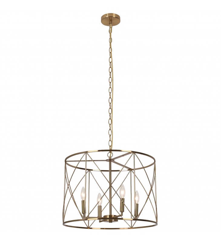 Dainolite Transitional Calah Hanging in Electroplated Aged Brass Metal for the Ceiling with 4 bulb, E12 socket base 60 Watts max Dimmable and UL Approved for Damp Location with a 1 Year Limited warranty. Great for Foyer/Hall, Kitchen, Dining rooms and Commercial use. Features include , Easy Installation, LED Compatible Height Adjustable