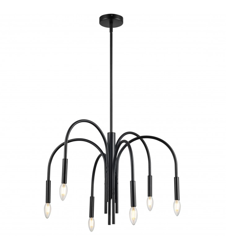 Dainolite Contemporary Callway Hanging in Painted Black Metal for the Ceiling with 6 bulb, E12 socket base 60 Watts max Dimmable and UL Approved for Damp Location with a 1 Year Limited warranty. Great for Dining, Kitchen, Foyer/Hall rooms and Commercial use. Features include , Sloped Ceiling Adaptable, Height Adjustable LED Compatible