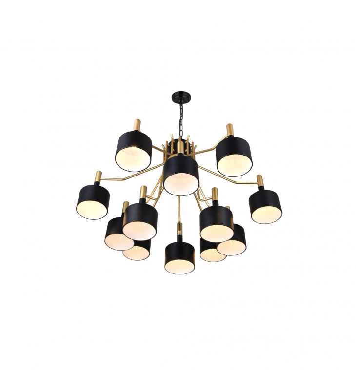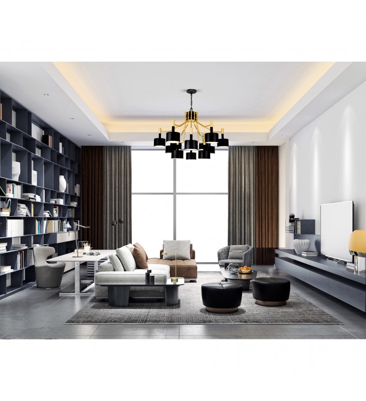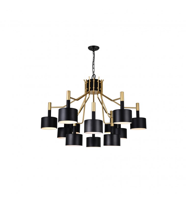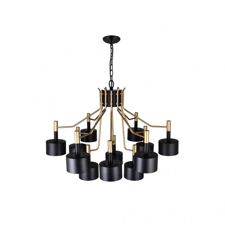 The Oversized Corna 12 Light 32 inch Chandelier in Matte Black & Satin Gold is a transitional lighting option displaying an interesting mix of classic and contemporary elements. Designed with an adjustable chain, a candelabra base with a modern update, and a luxurious black-and-gold color palette, this down chandelier is one that will give your space an understated elegance and an indulgent feel.
