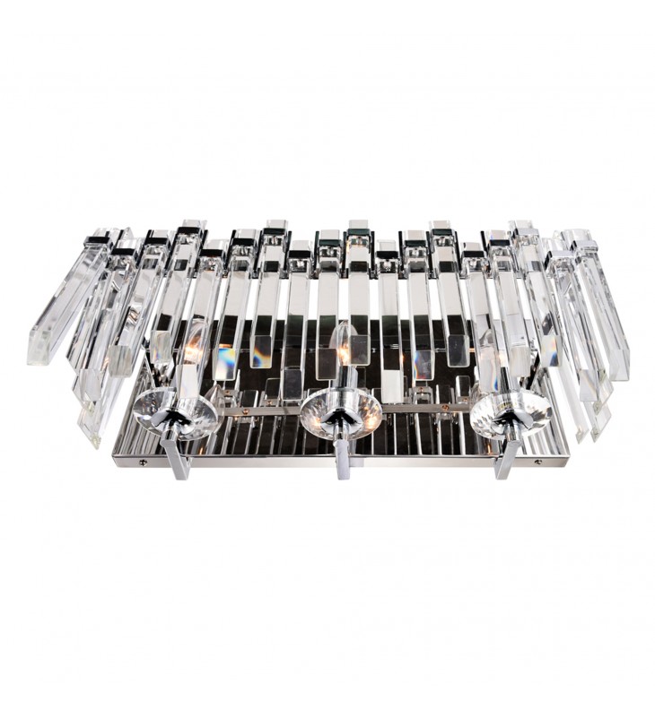 Easily make a small room a tres chic space with the Henrietta 3 Light Wall Sconce. Designed with a chrome metal frame and a rectangular shade made of upright clear crystal bars, this wall light displays a visual appeal that will leave an impression to your guests. Expect a soft but glam glow from this 21 inch by 10 inch by 6 inch wall light.