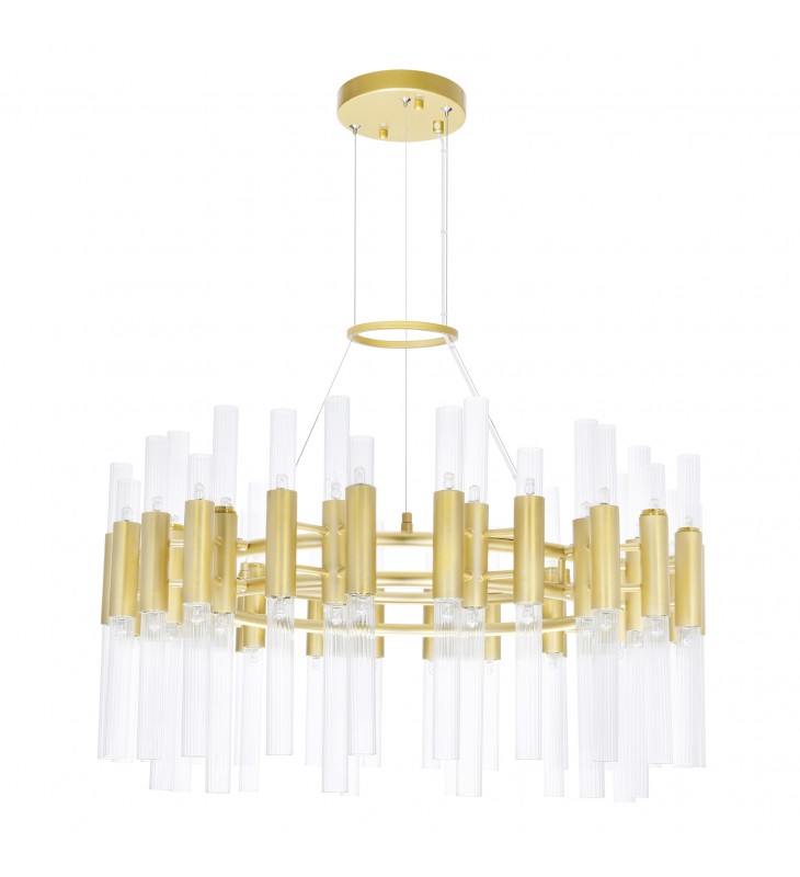 The Orgue 72 Light Chandelier is what you need to put your own stamp in your home. This glamorous down chandelier is finished in satin gold and features a 32 inch round frame holding glass rods in upright position. A total of 72 LED G9 bulbs will cast uninterrupted glow to your space. This luxe ceiling decoration fits modern and transitional homes.