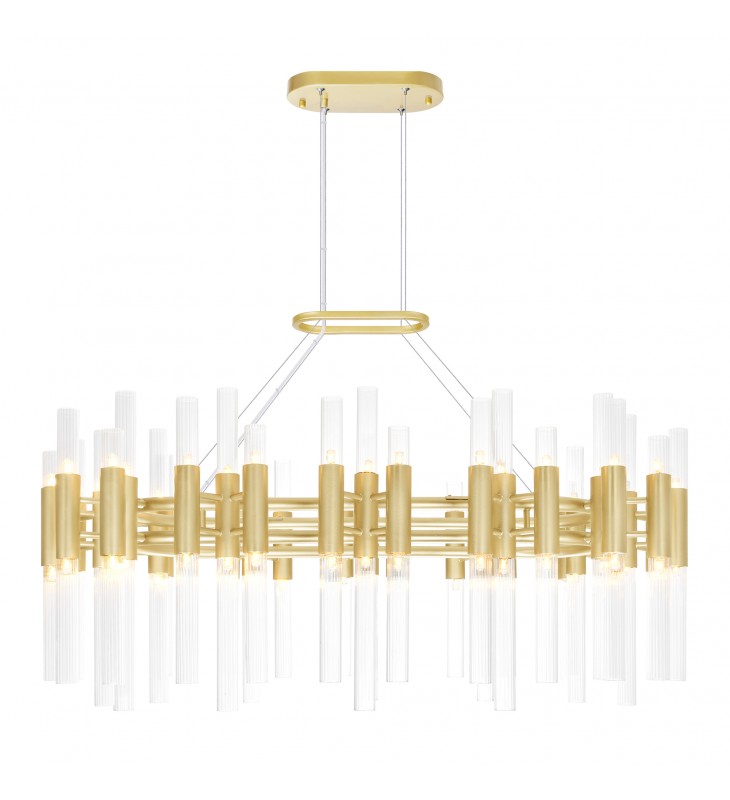The Orgue 72 Light 39 inch Chandelier has a real impact thanks to its size, vibrancy, and contemporary style. This light fixture makes a dramatic statement with its weightless look and its luxe satin gold finish. Suspend this stylish chandelier over a long dining table or over your beautiful kitchen island and see it bring a warm and welcoming glow to your space.