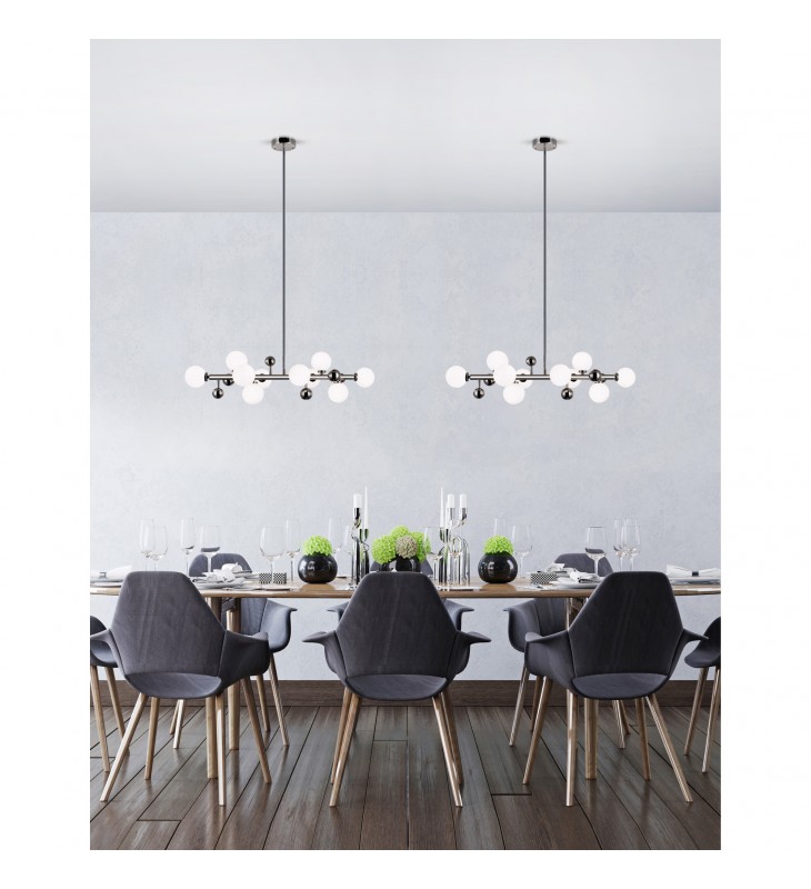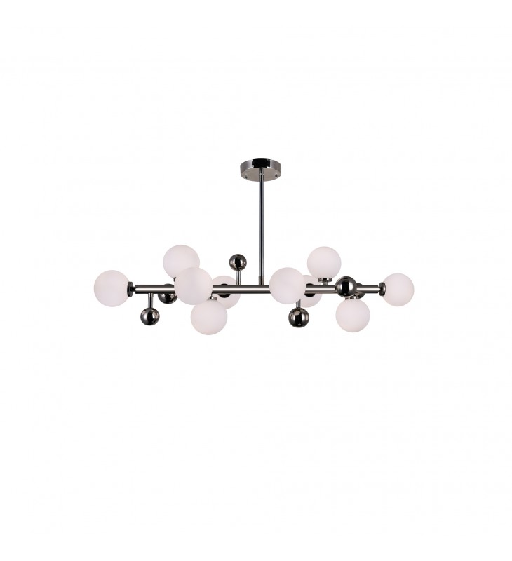 This is easily the finishing touch your space needs. The Element 10 Light Chandelier in Polished Nickel features a linear assembly of frosted glass orbs ready to shed some light on your kitchen island or dining table. Measuring 36 inches long and 11 inches wide, this oversized chandelier will infuse style, warmth, and substance to any room.