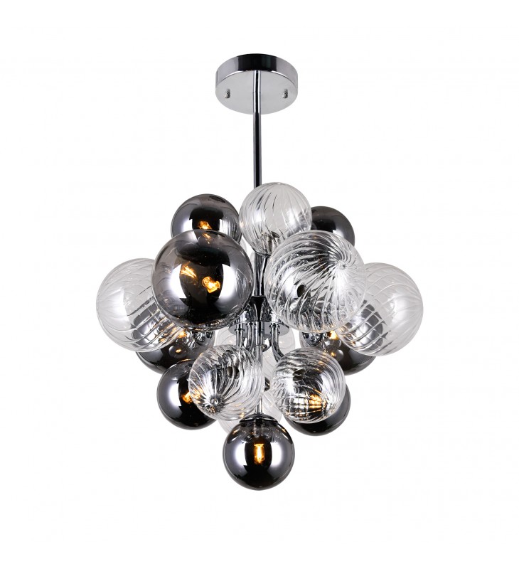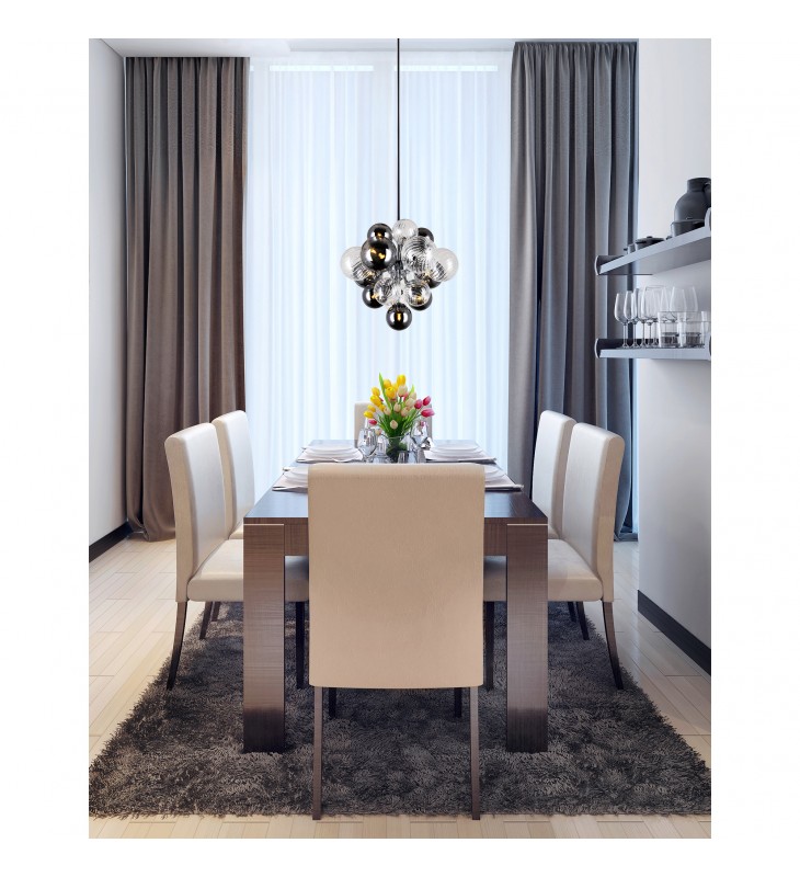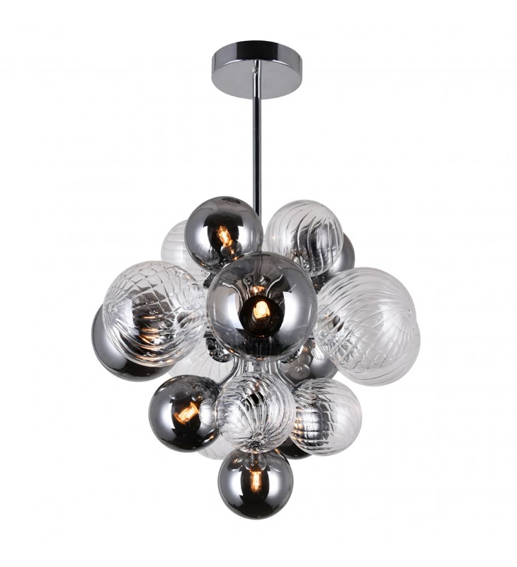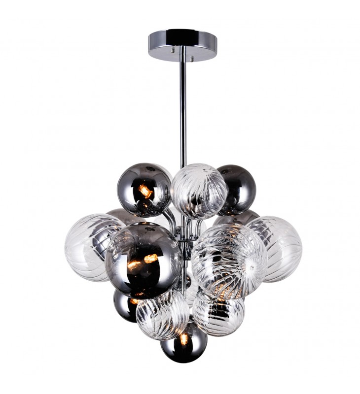 Your living space will earn some serious style points when you update your lighting with this Pallocino 8 Light Down Chandelier in Chrome Finish. Designed with a stylish cluster of tinted glass balls, this fixture draws the eye and adds drama and personality to your space. The chandelier measures 16 inches in diameter and has an adjustable downrod.