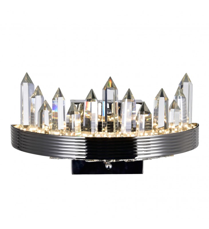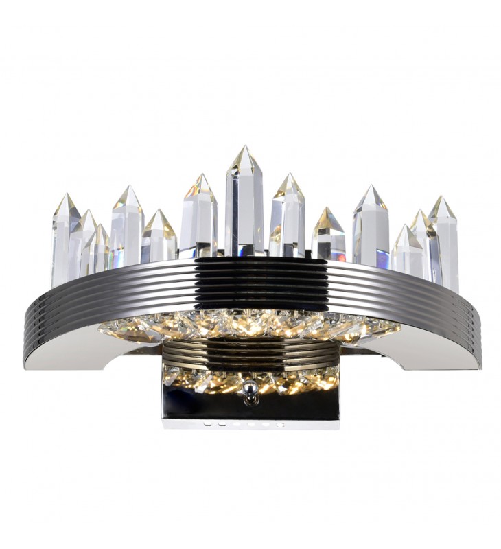 The Agassiz 12 inch LED Wall Sconce will polish your space with sophisticated style while maintaining its purpose of illuminating a space. This 12 inch wide wall lamp features a textured metal band in polished nickel finish topped with beveled clear crystal prisms with integrated LEDs. You can count on this lamp to cast a soft but crisp shine to your walls.