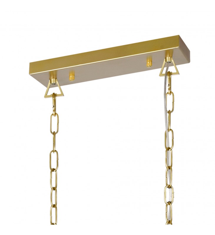 Undeniably an illuminating art piece, the Tudor 6 Light Chandelier is more than just a light source. Six modern candelabras in satin gold finish are housed in a black open frame suspending from a luxe satin gold adjustable chain. Perfect for adding a touch of luxury and style to any dining room or kitchen, this island/pool table light will cozy up your space effortlessly.