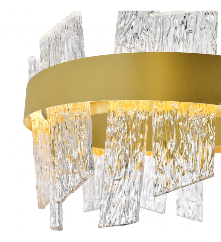 A great choice for many different rooms, the Guadiana Satin Gold 24 inch LED Chandelier packs a major style punch. It has the perfect style contrast given the black metal and clear glass material plus the combination of straight lines and curves. This modernistic and energy-efficient LED light fixture provides general ambient illumination while also serving as a statement-making decor.