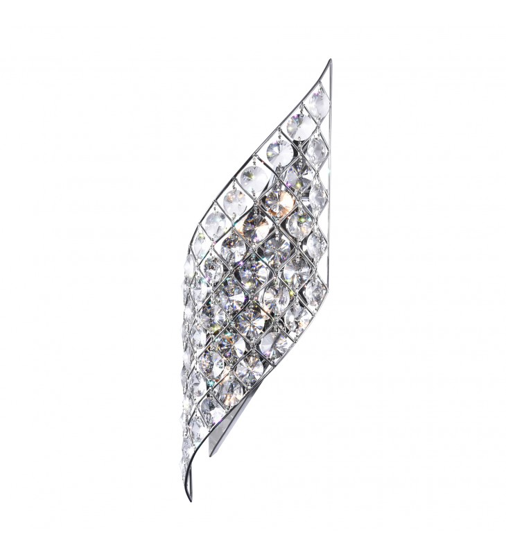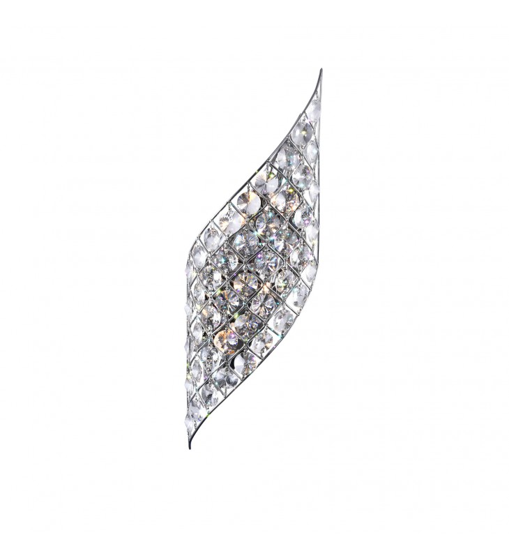 The Chique 4 Light Right Ribbon Wall Sconce is a glam wall light that can add refined elegance to any space. It is designed with a chrome-finished metal frame shaped like a ribbon swirl. The diamond pattern and crystal embellishment add to the opulence of this piece. Use this to light up a dark corridor or hallway, to add a layer of dramatic lighting in the dining or living room, or to infuse some elegant vibes in a powder room. This light fixture is also available in left-slanting form.
