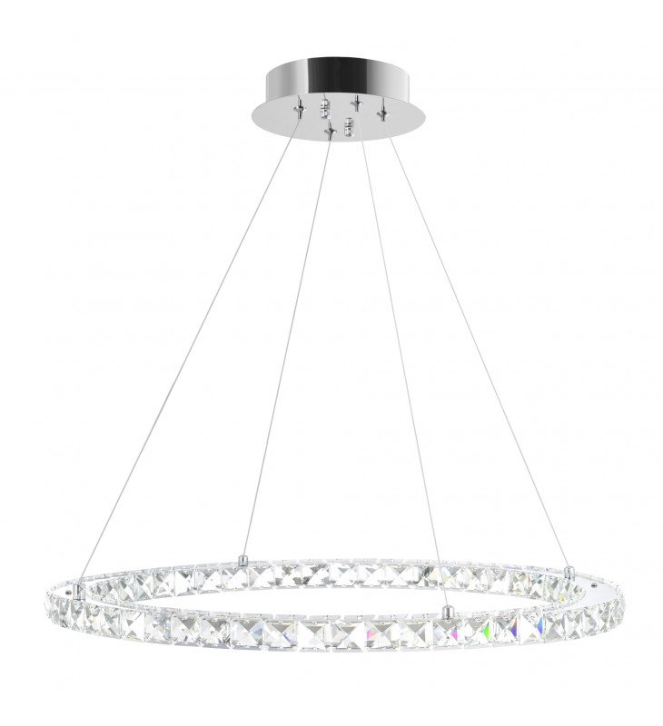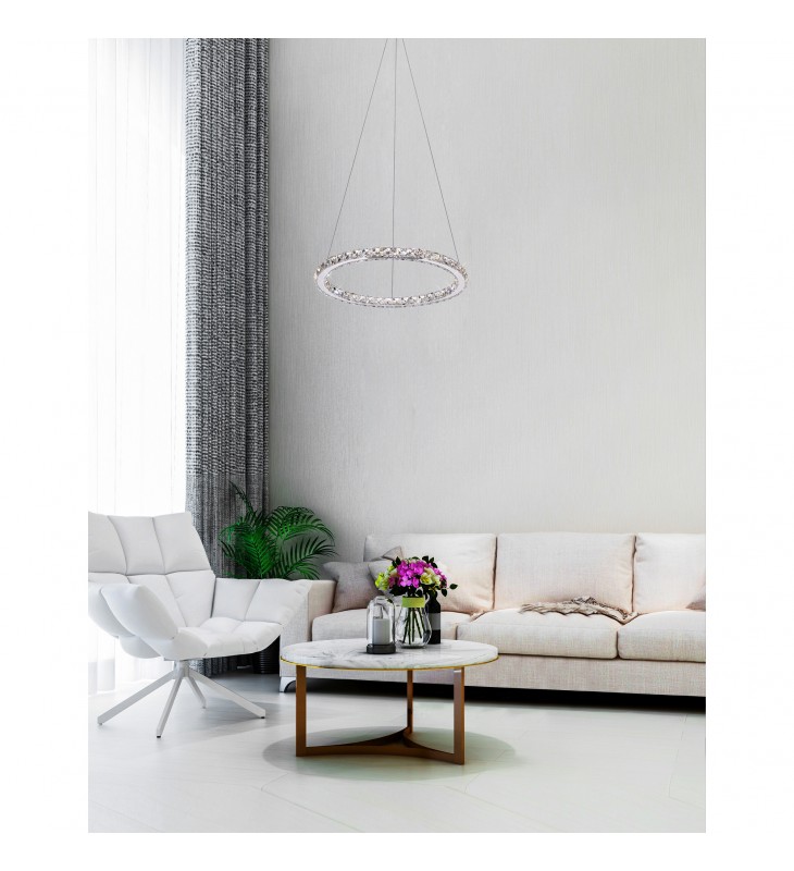 Bring a sparkling sheen to your design scheme with the Ring 24 inch Single Halo LED Chandelier. This captivating circle of light is an elegant choice for a contemporary dining or living space. Featuring chrome-finished hardware paired with faceted clear crystals, this glam light will provide your space with illumination on a divine level.