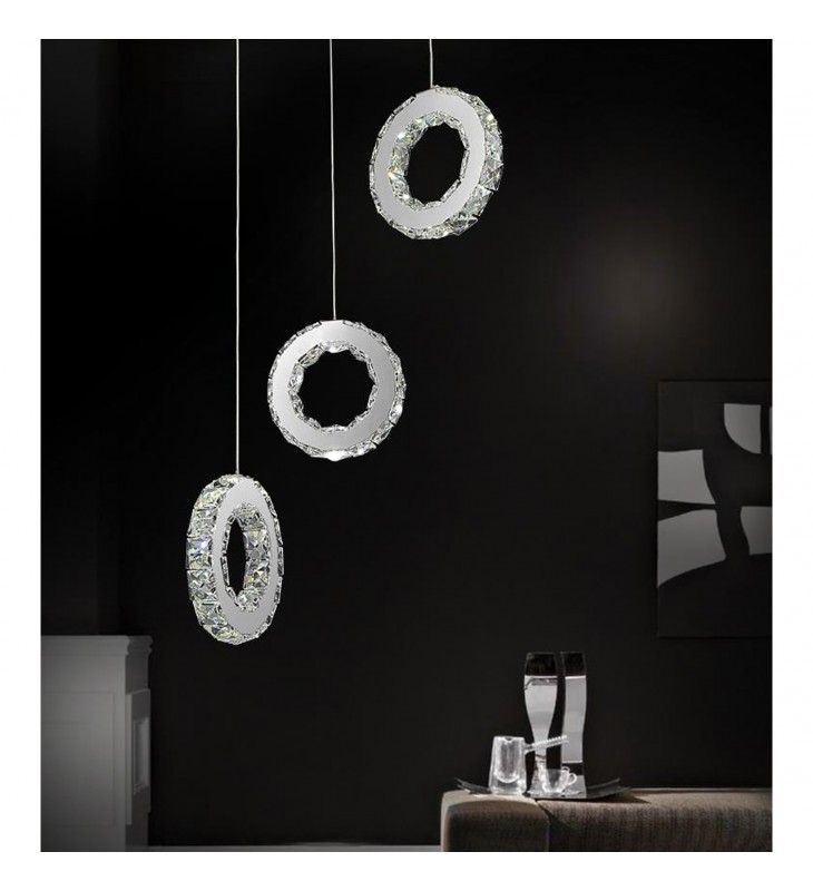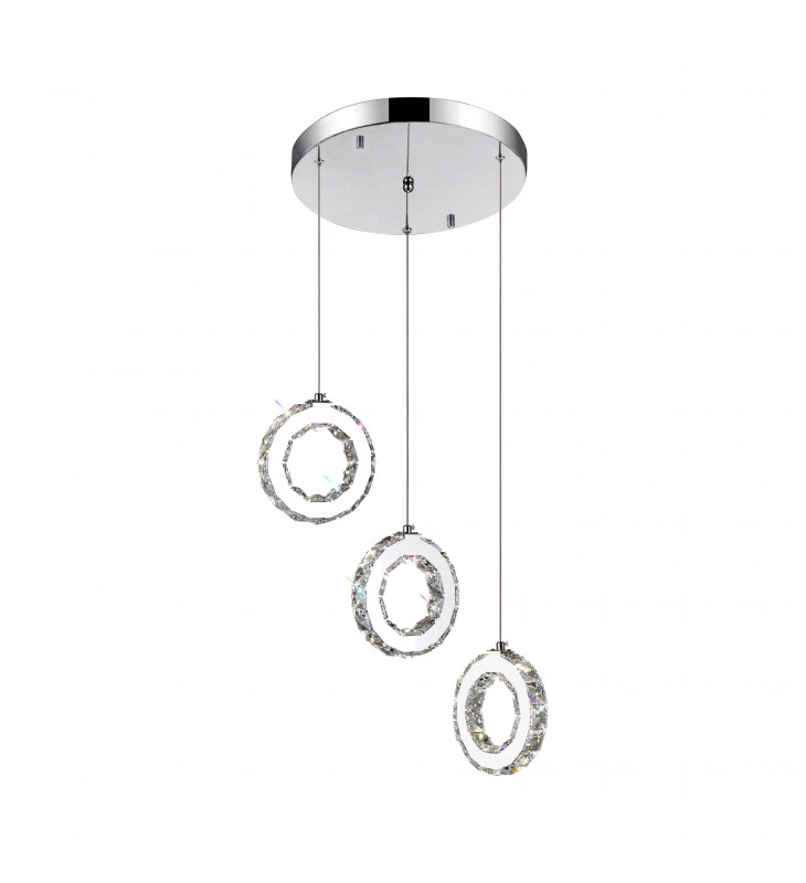 Transform your home into a setting with a luxe vibe by adding the Ring 3 Pendant LED Chandelier. This light fixture comes with faceted crystal embellishments, chrome-finished hardware, and built inch energy-efficient LEDs. Perfect over a dining table or kitchen island counter, this shimmering light source will certainly give your space an air of design confidence.