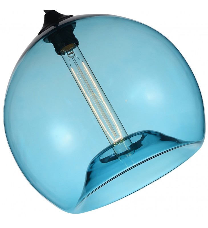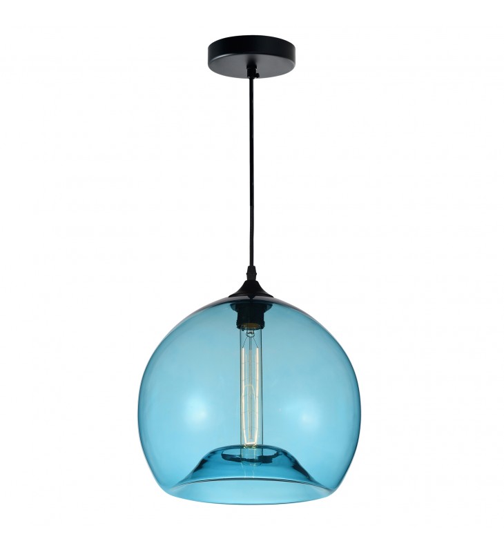 Want to add a hint of color and style to a streamlined space? Try the Glass 2 Light Blue Bowl Pendant. This lighting option has a clean and uncluttered design that won\'t disrupt your home\'s Zen vibe. It features a bowl-shaped shade in sky blue finish and a black hardware. The colored glass shade beautifully diffuses light that comes from two bulbs.