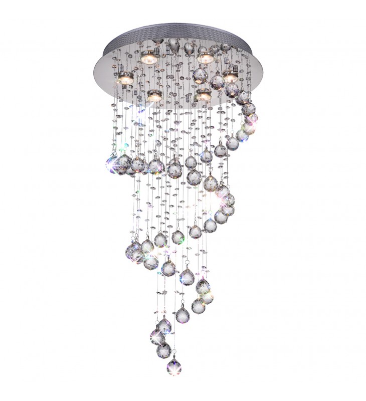 The Spiral 20 inch 6 Light Flush Mount Chandelier is one elegant light fixture that will bring a luxurious flair to your space without it looking and feeling \"extra.\" It\'s that fancy chandelier that glitter so subtly it blends perfectly with your existing decor. Beautiful in the dining room, living room, or entryway, this light source with spiraling crystal beads and a delicate curtain of even more crystals provides just the right amount of glam while delivering even illumination.